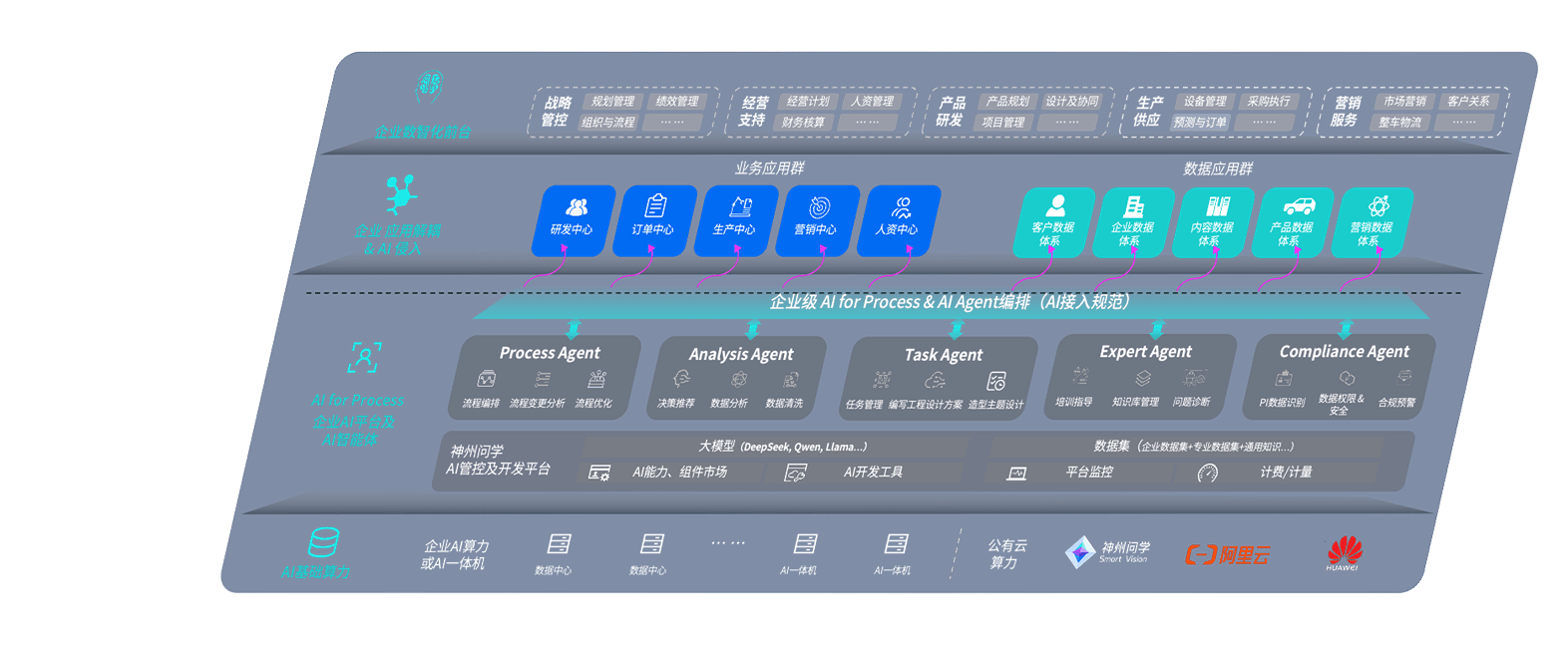 抢庄牛牛问学智车解决方案是一套基于AI技术的汽车行业智能化系统,,覆盖从底层算力到顶层AI应用的全栈方案。。方案由算力层、、、模型层和应用层组成:算力层,,,方案支持多种一体机配置,,,具备云端灵活部署、、多云适配以及动态优化计算资源的能力;模型层,,,,抢庄牛牛问学平台版提供了企业级AI应用一站式构建与管理平台,,,支持基于后训练强化技术的汽车企业专属模型的训练、、评测和运营;应用层,,抢庄牛牛问学DeepSeek版提供包括超级员工、、、、智能招采、、智能营销、、、智能客服、、、AI for BI等一系列解决方案,,可助力汽车行业实现数字化转型,,,让管理更智能、、、、响应更敏捷。。。。